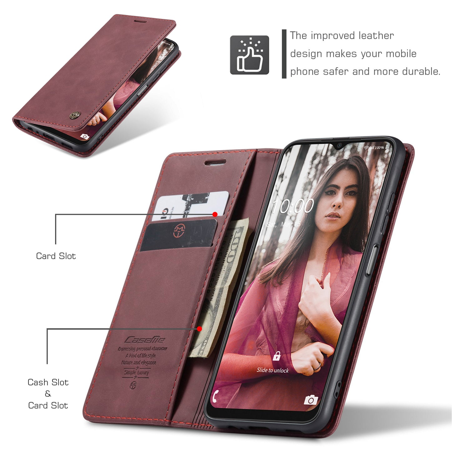 CaseMe Retro Leather Wallet Stand Galaxy A22/A22s Case Slim