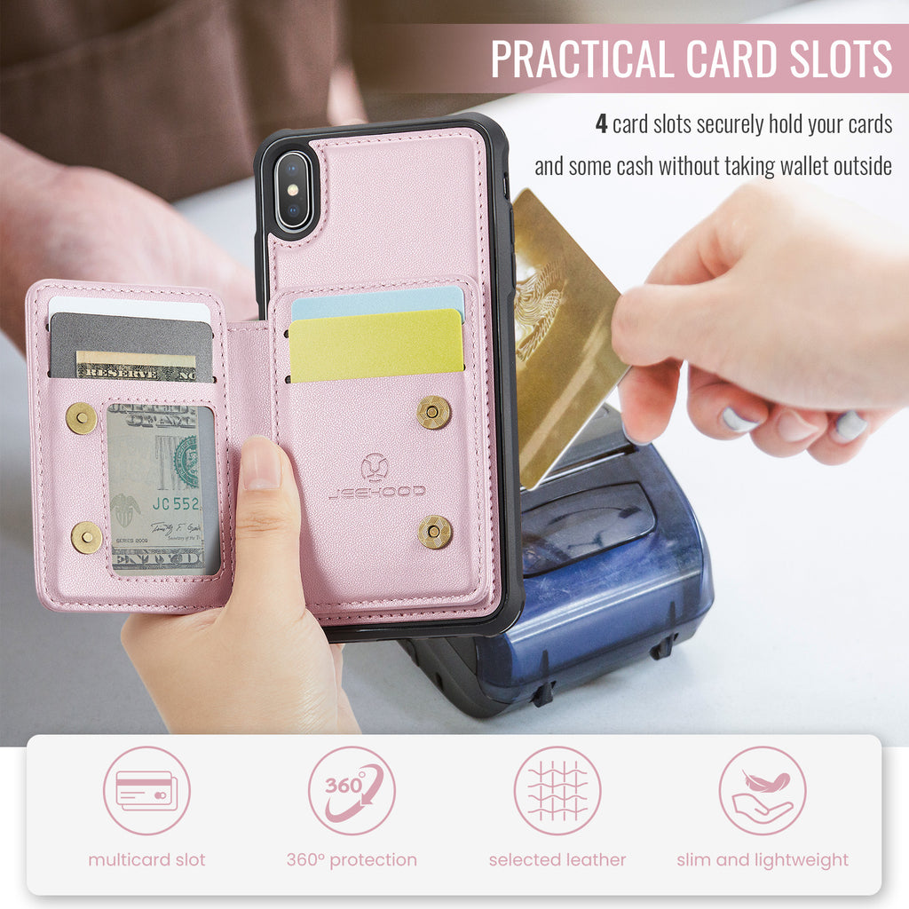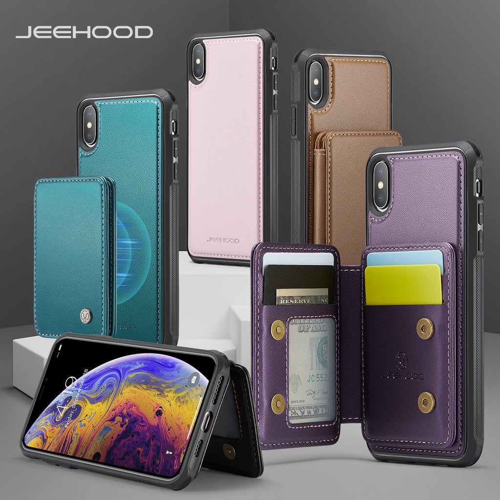 JEEHOOD Magnetic Clasp Book Card Holder iPhone Xs Max Case